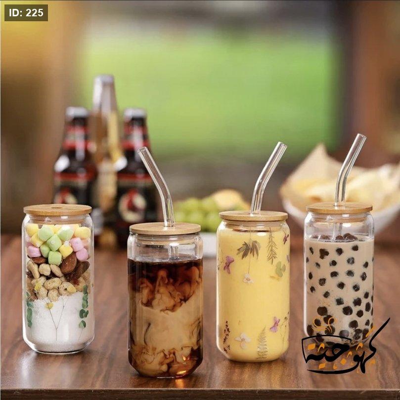 كوب زجاجي مع غطاء