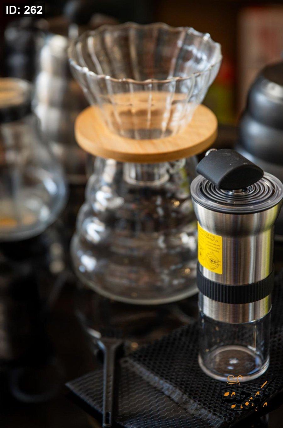 مطحنة +ميزان+ وعاء صب + قمع + ابريق الغلي